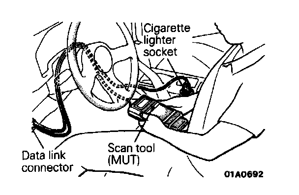 (2) Insert the power-supply terminal of the scan tool into the cigarette lighter socket. If it is necessary to make the inspection while cranking the engine, use the battery harness to take power directly from the battery.