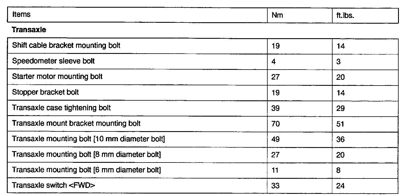 M/T Torque Data