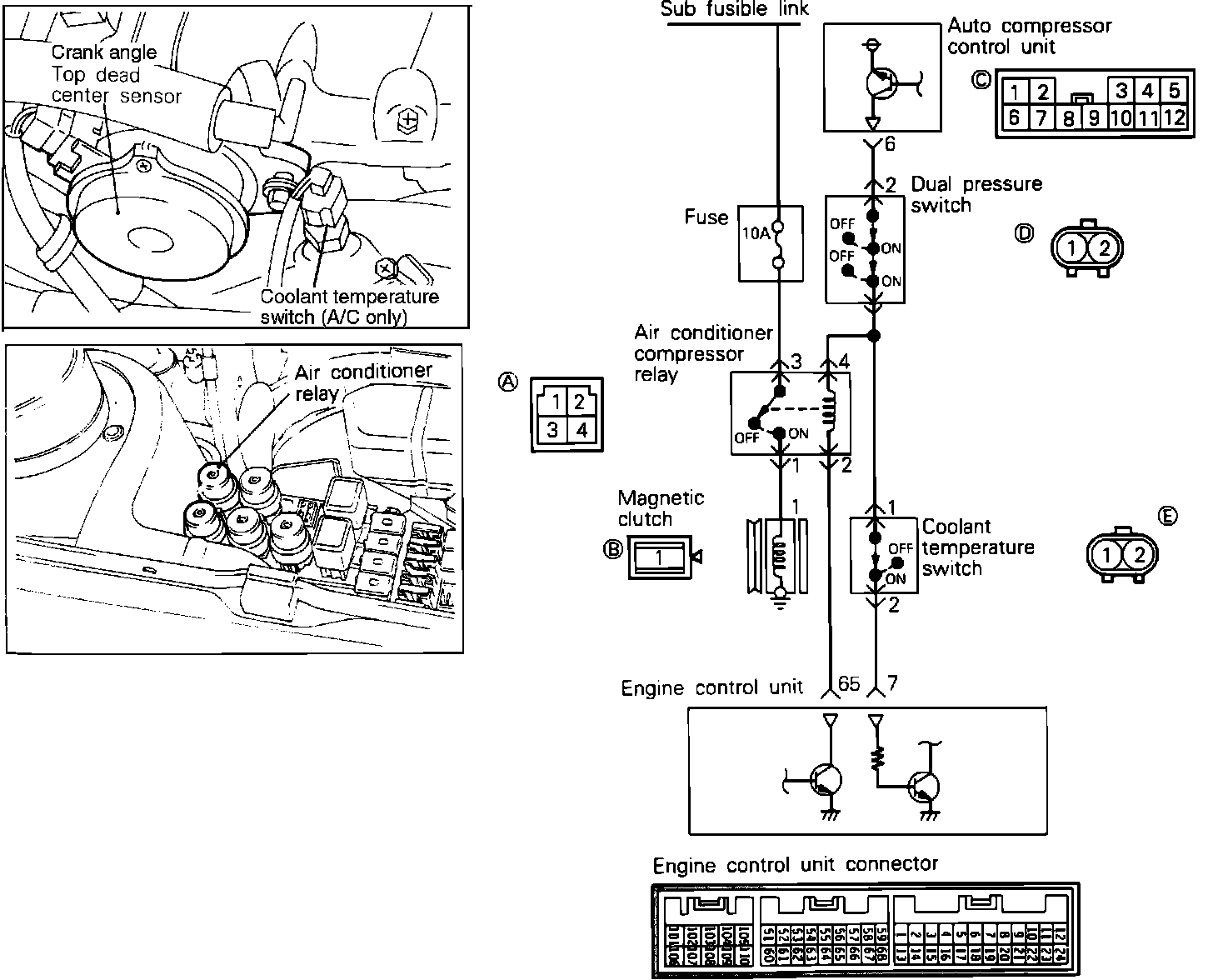 Crank Angle, Top Dead Center Sensor And Coolant Temperature (A/C Only) Switch Location: