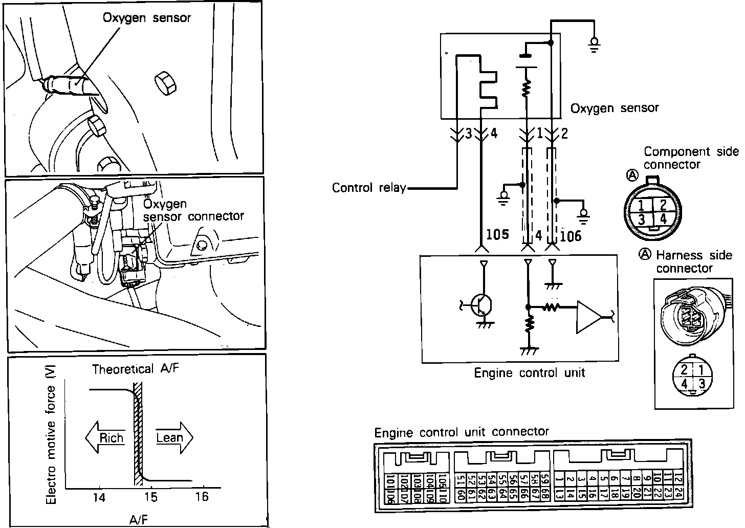 1. Disconnect the oxygen sensor and the ECU connector.