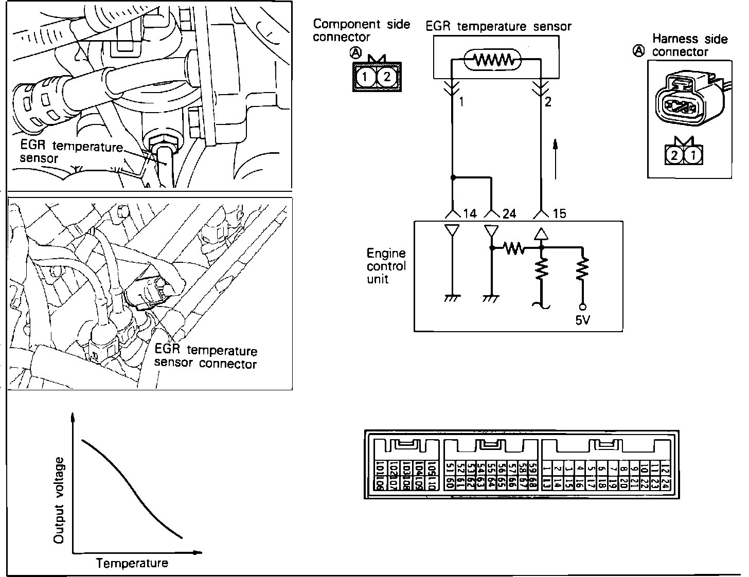 To confirm that the EGR valve is functioning properly, the ECU expects to see an increase in temperature at the sensor whenever the EGR valve is operating. In the event of a malfunction the ECU will set a code and turn the Check Engine Light "on". The resistance value of the sensor increases as temperature decreases.