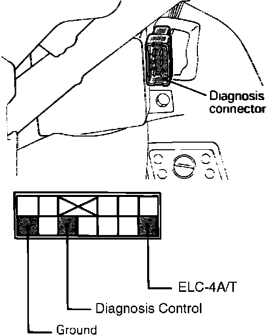 The transmission self diagnostic connector is located under the left side of the dash panel, near the steering column.