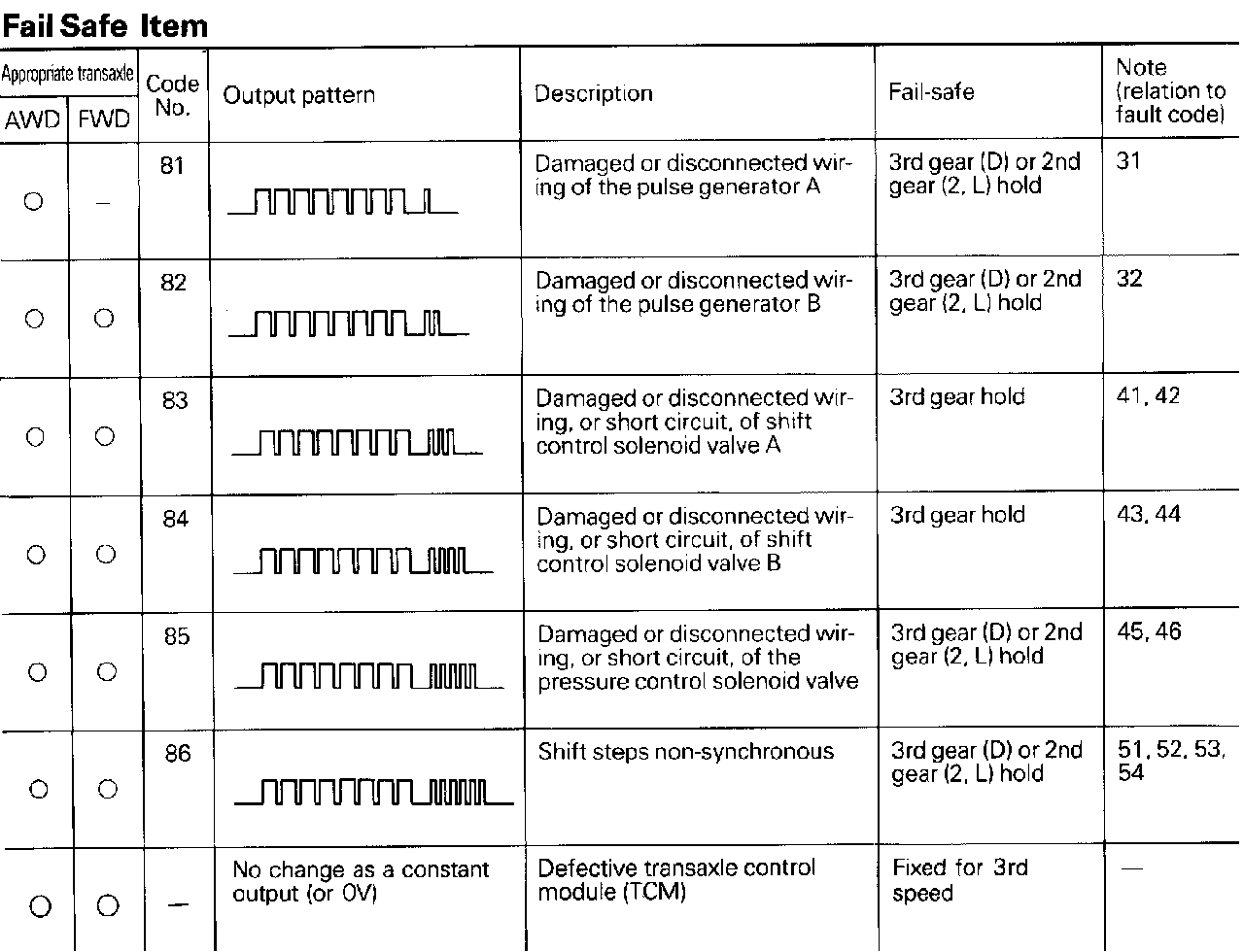 Fail Safe Code Chart: