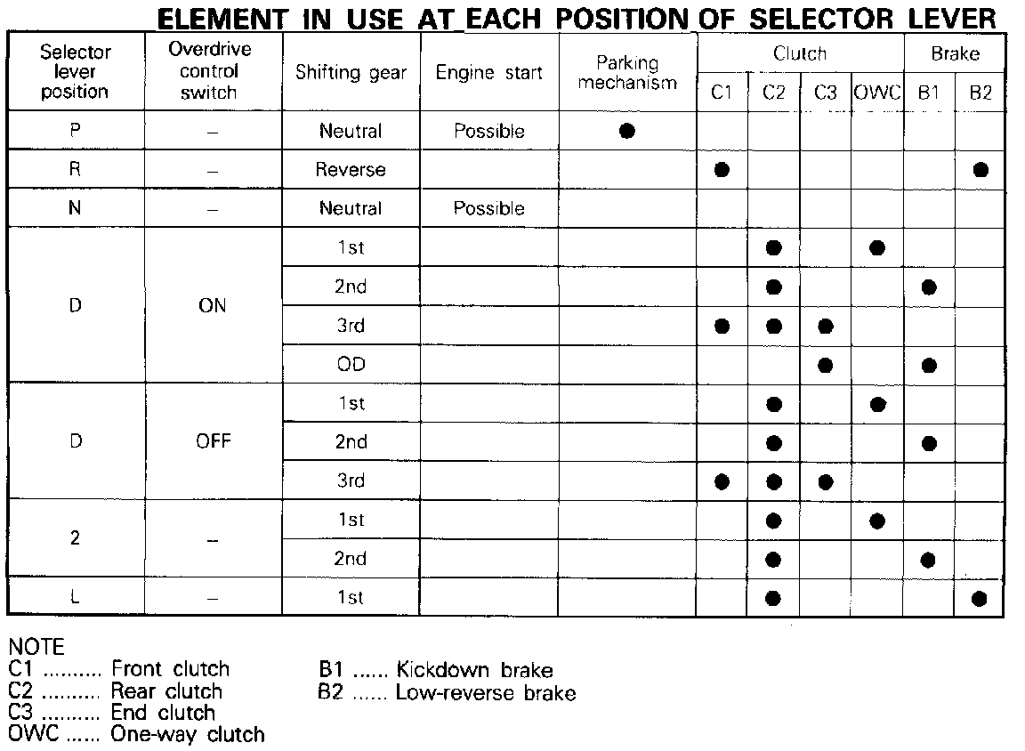 Selector Lever Position Chart: