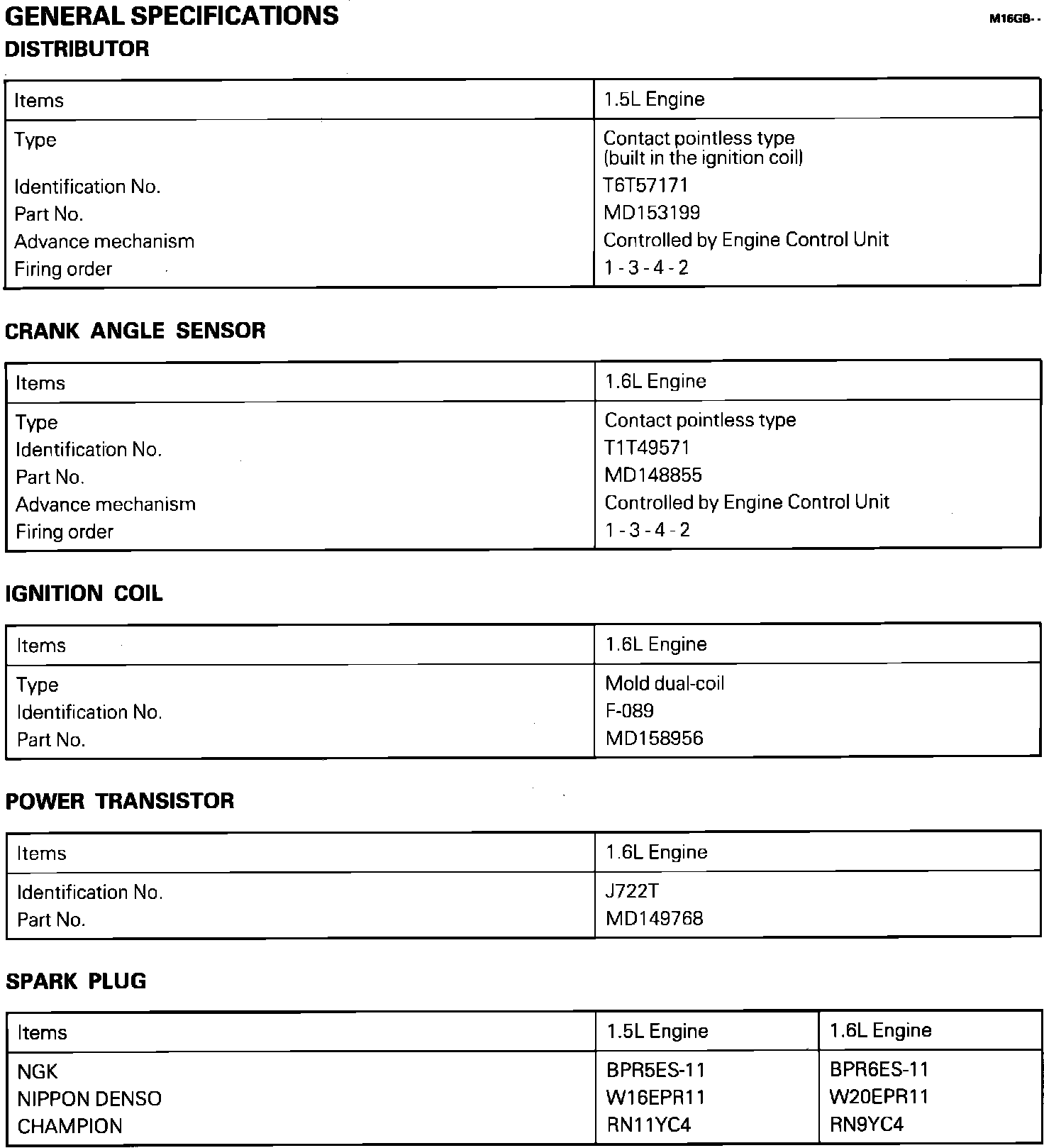 Mirage L4-1468cc 1.5L SOHC