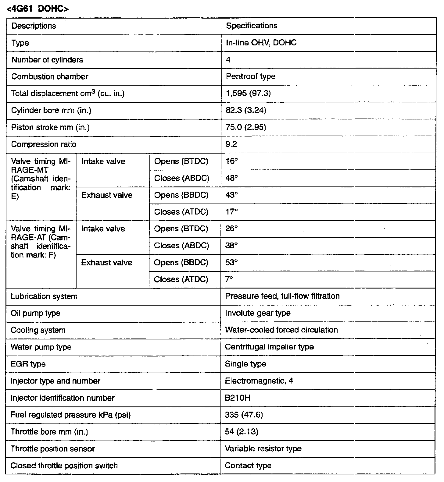 Mirage L4-1597cc 1.6L DOHC