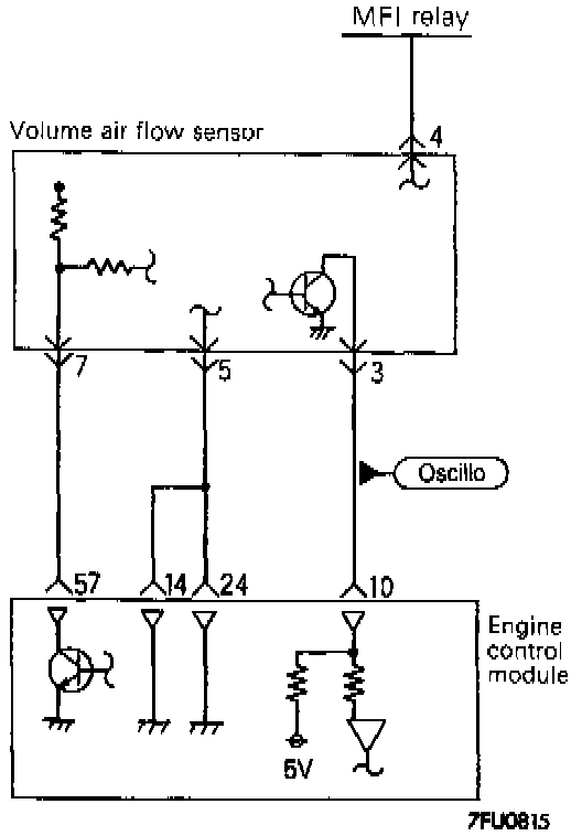 - If, when the ignition switch is switched ON (but the engine is not started) , the volume air flow sensor output frequency is any value other than zero, a malfunction of the volume air flow sensor or of the engine control module is the probable cause.