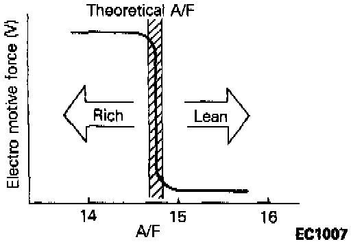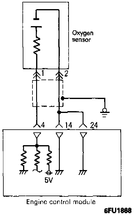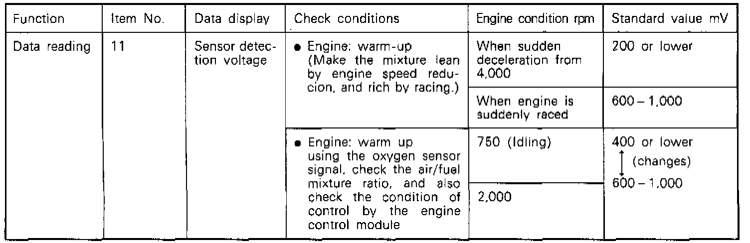 - If the heated oxygen sensor output voltage deviates from the standard value even though the results of the checking of the heated oxygen sensor are normal, the cause is probably a malfunction of a component related to mixture control.
