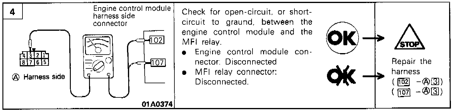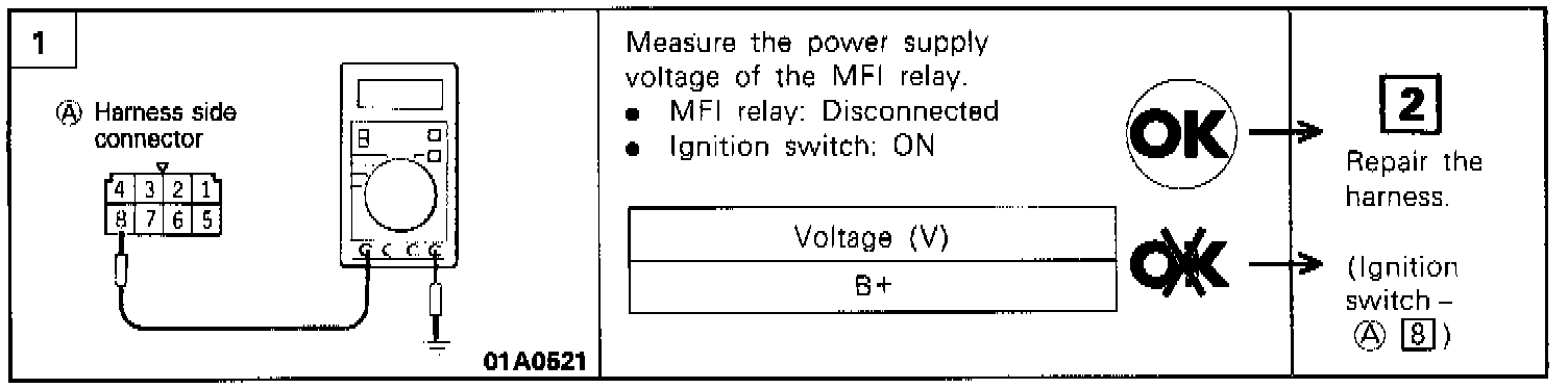 2. Check the continuity between the multiport fuel injection relay terminals.