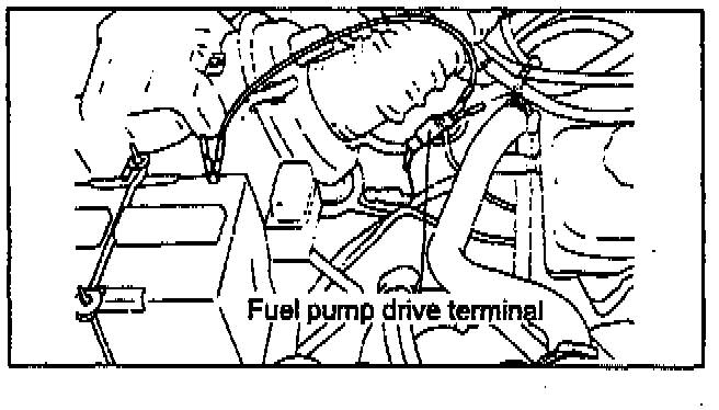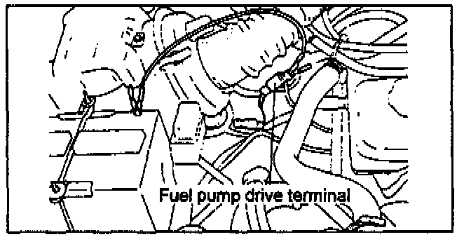 8. Apply battery voltage to the fuel pump drive terminal to activate the fuel pump.