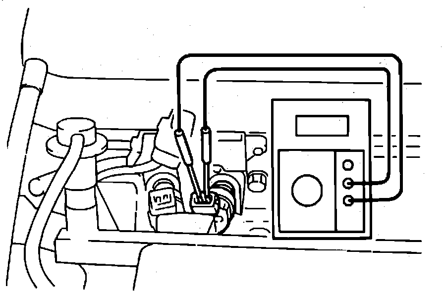 Using a stethoscope, check the operational sound (tick) made by the injectors (one at a time) during idle or cranking. Check that the sound is produced at shorter intervals as the engine speed increases.