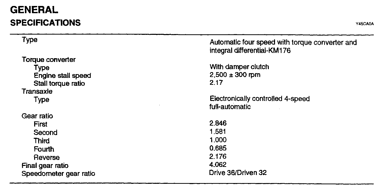 KM176 4-spd A/T, Standard Oil Pressure Table ('94):