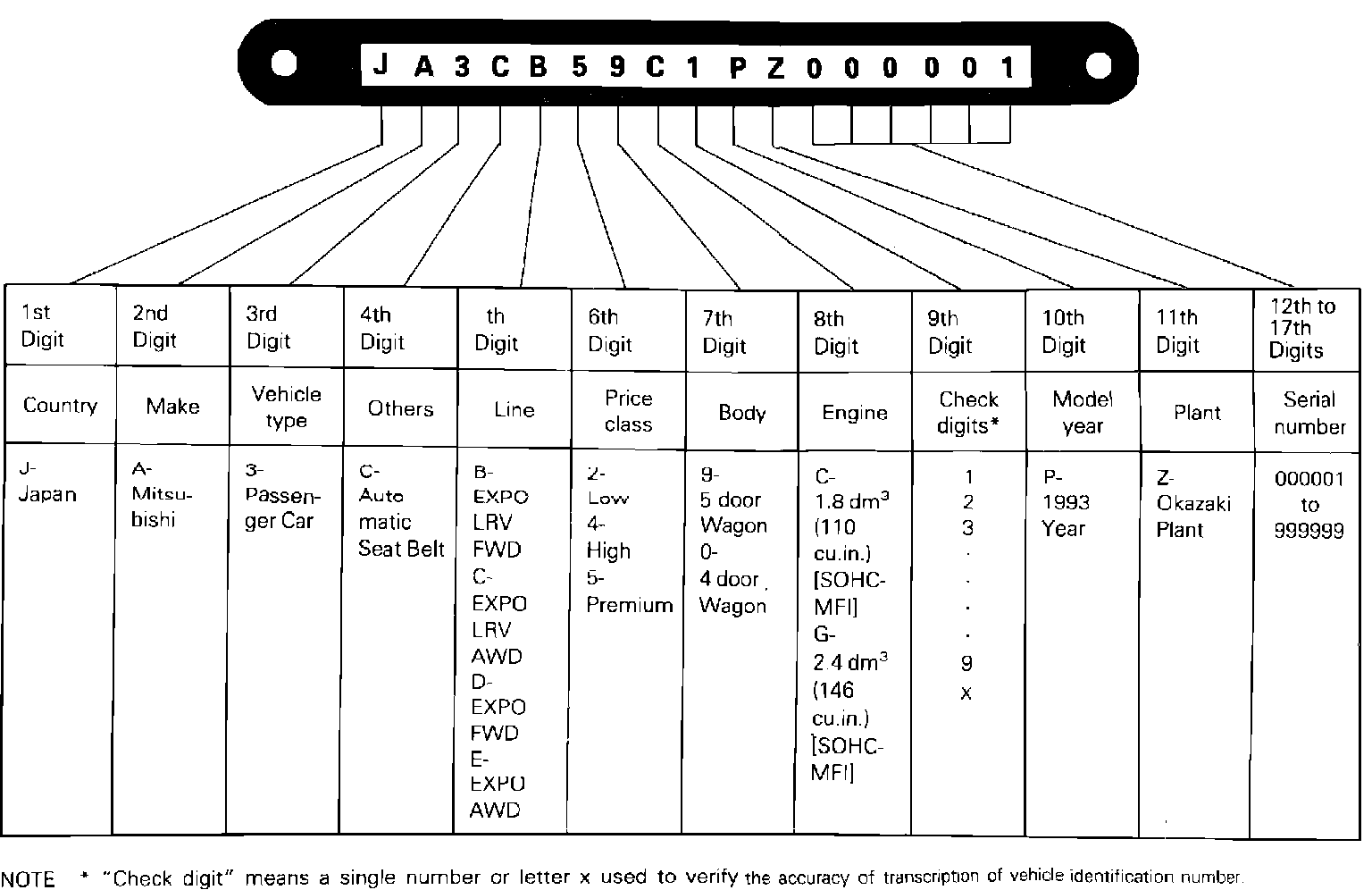 Vehicle Identification Code Chart Plate: