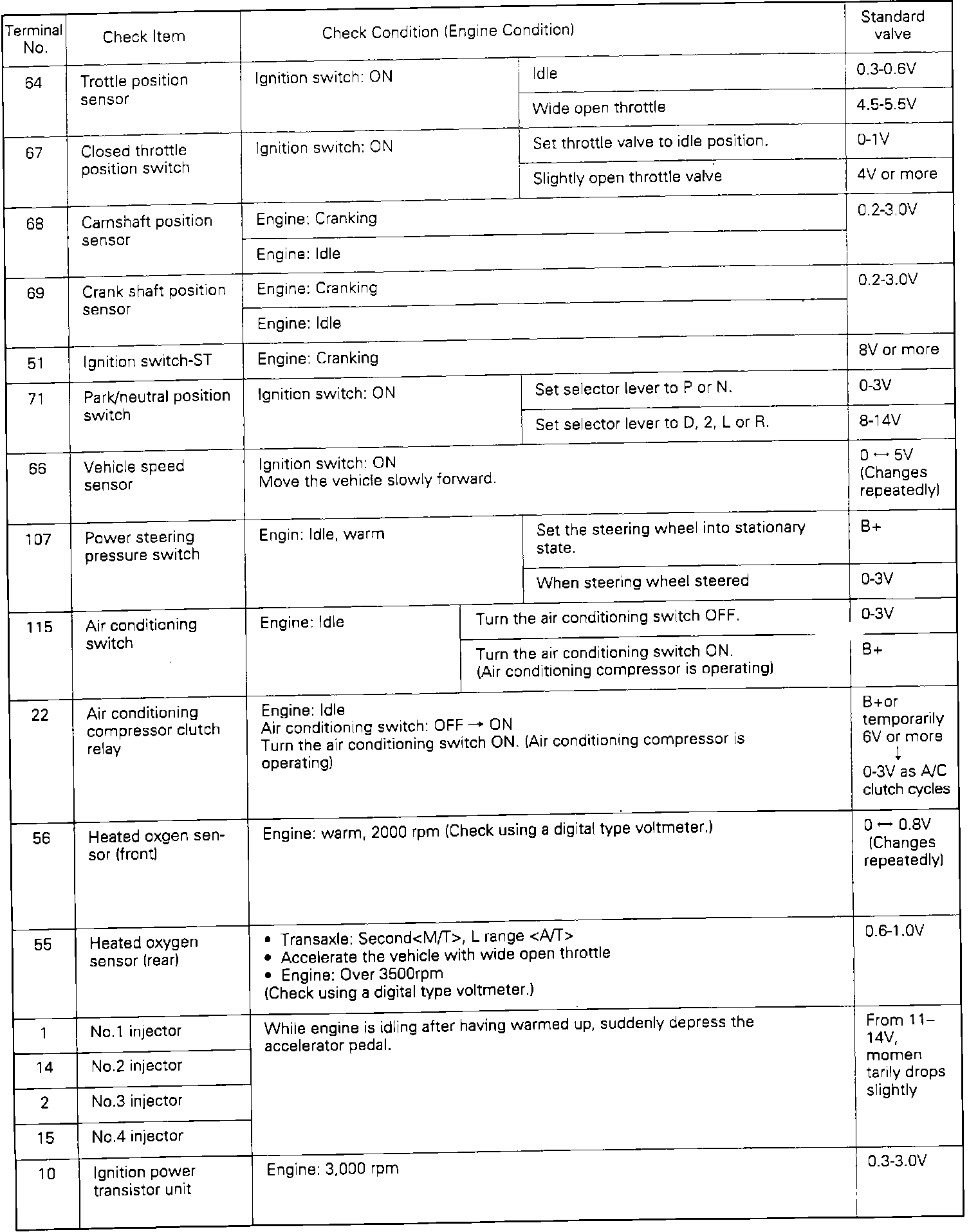 ECU TERMINAL VOLTAGE CHART 3/3