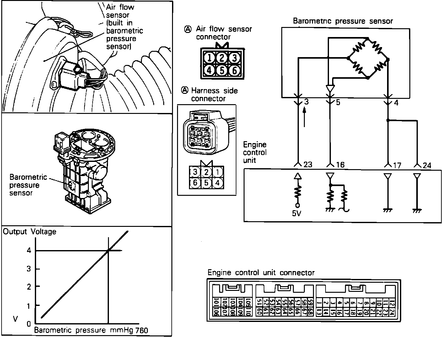 The ECU uses the Voltage signal to adjust the air-fuel ratio and ignition timing for the altitude at which the vehicle is running, thus improving driveability at high altitude.