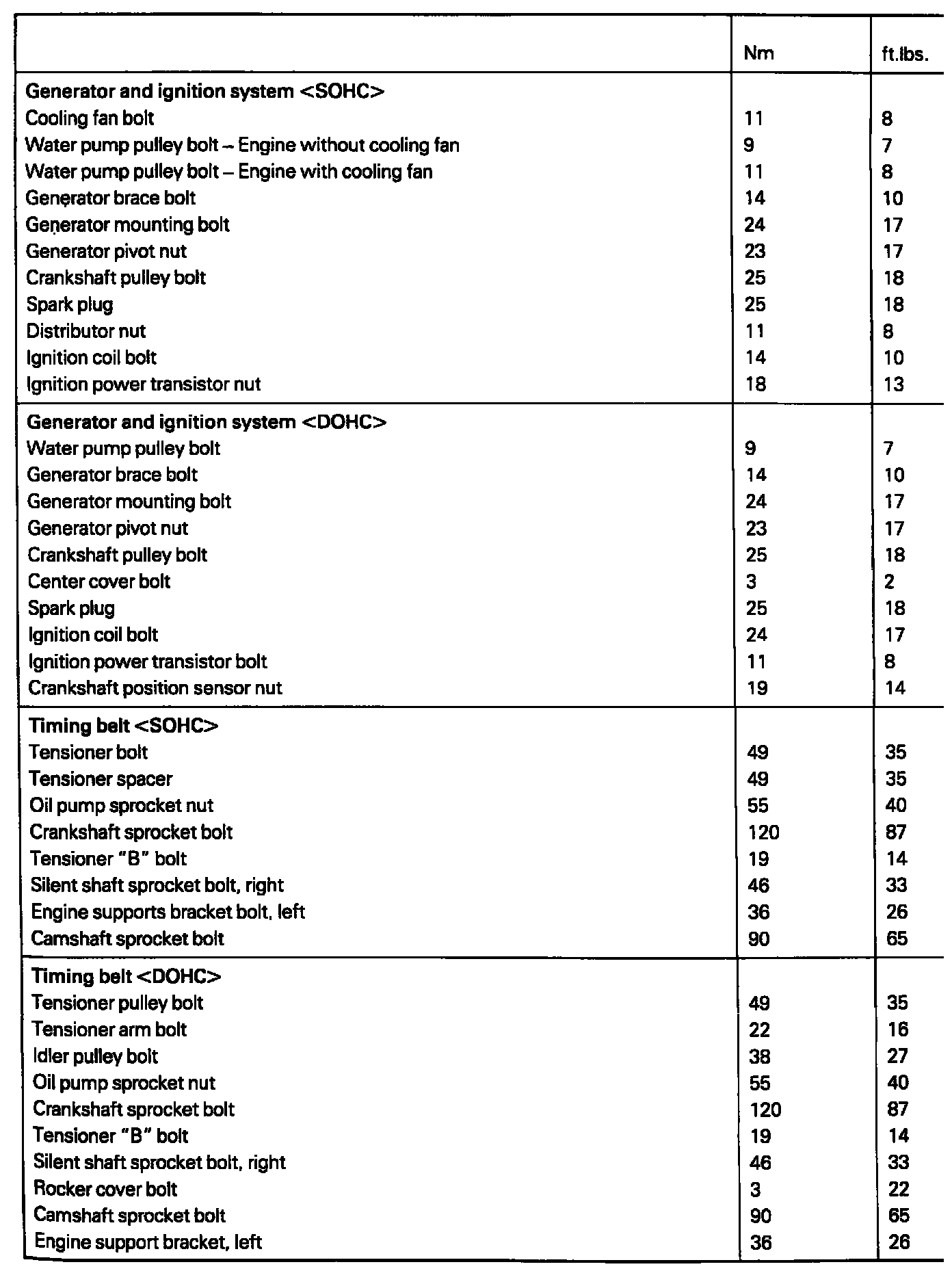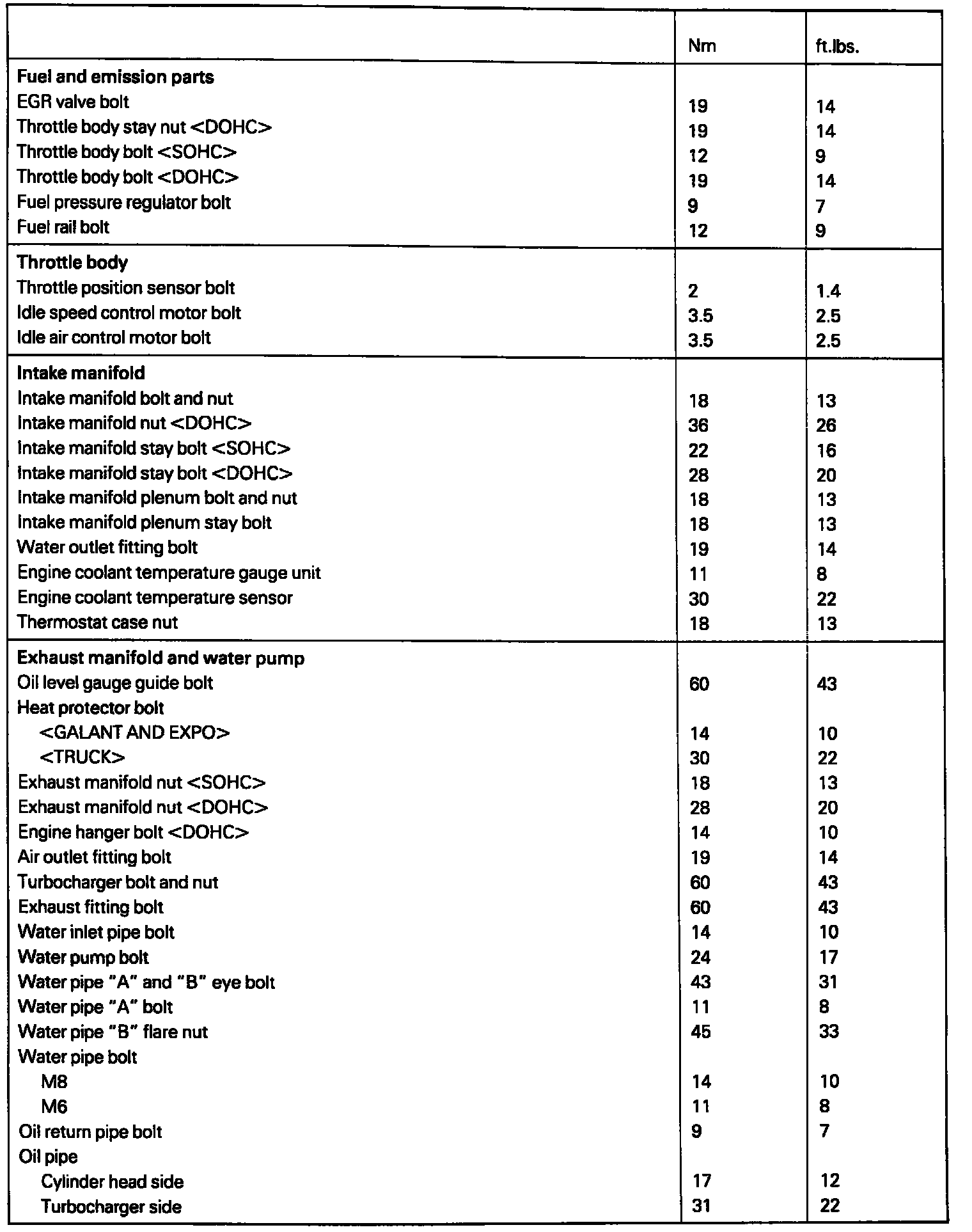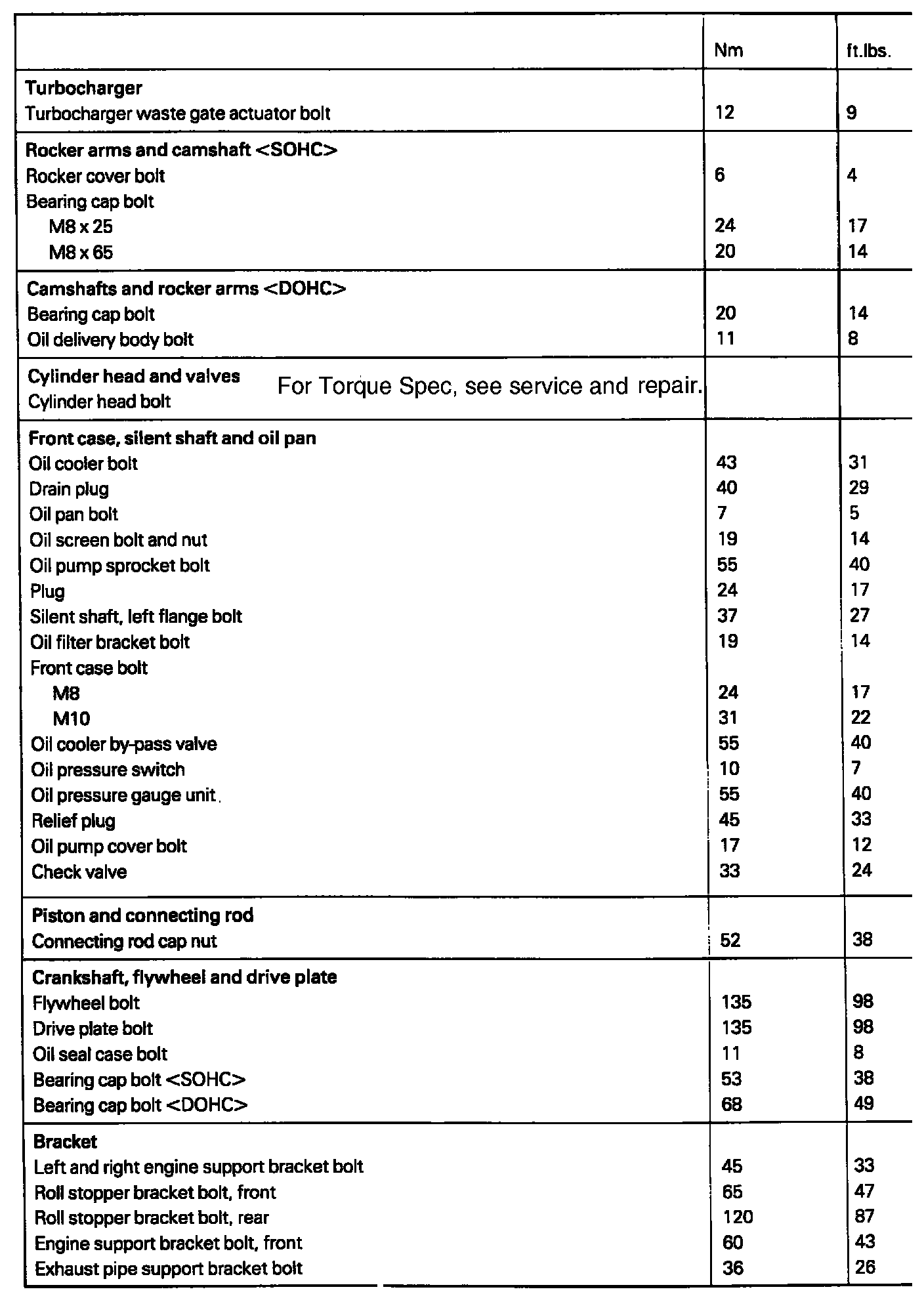 Torque Specifications