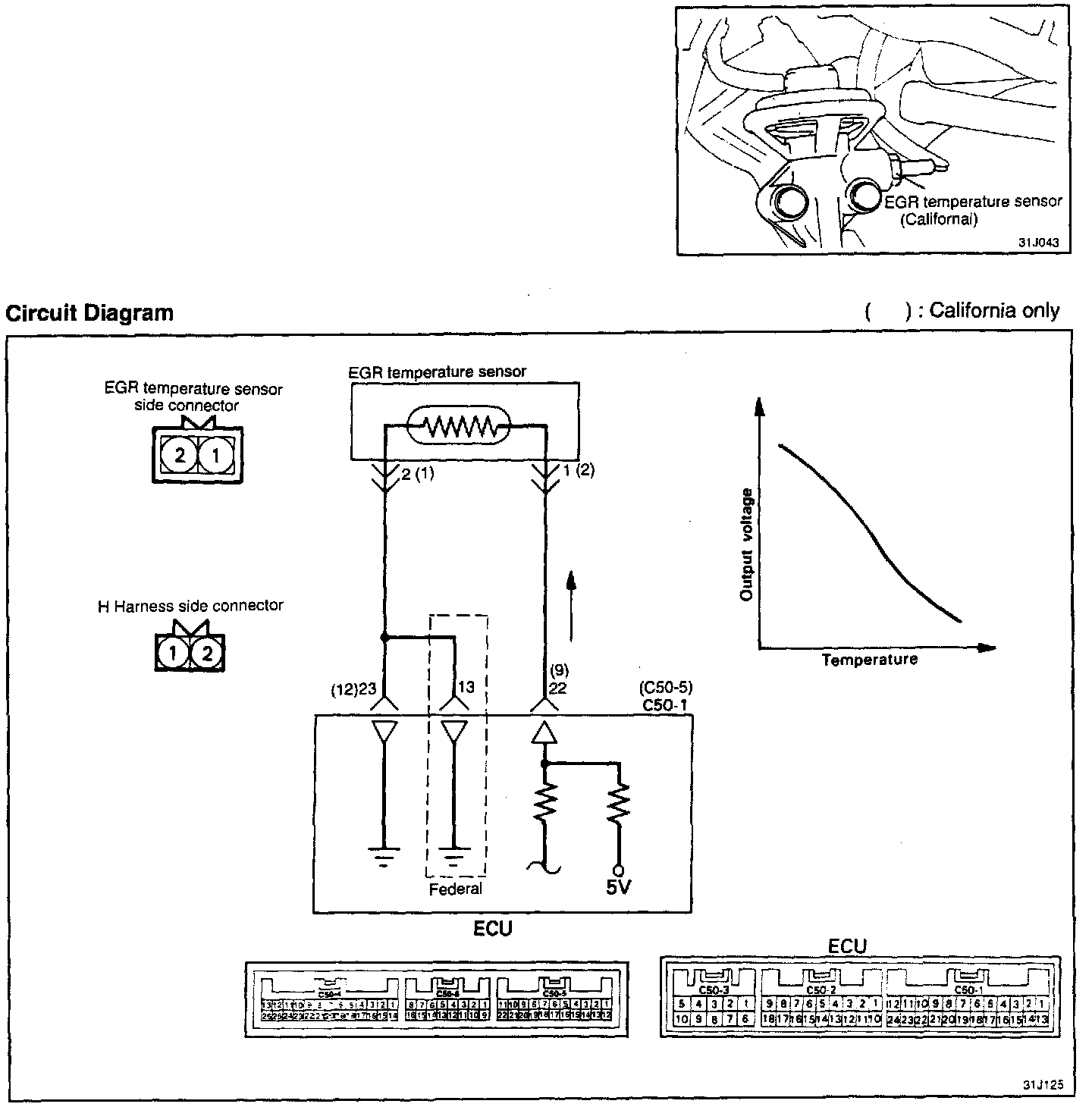 14. Using a volt meter, check for voltage at the ECU harness connector C50-3 terminal 9 (red wire) and ground.