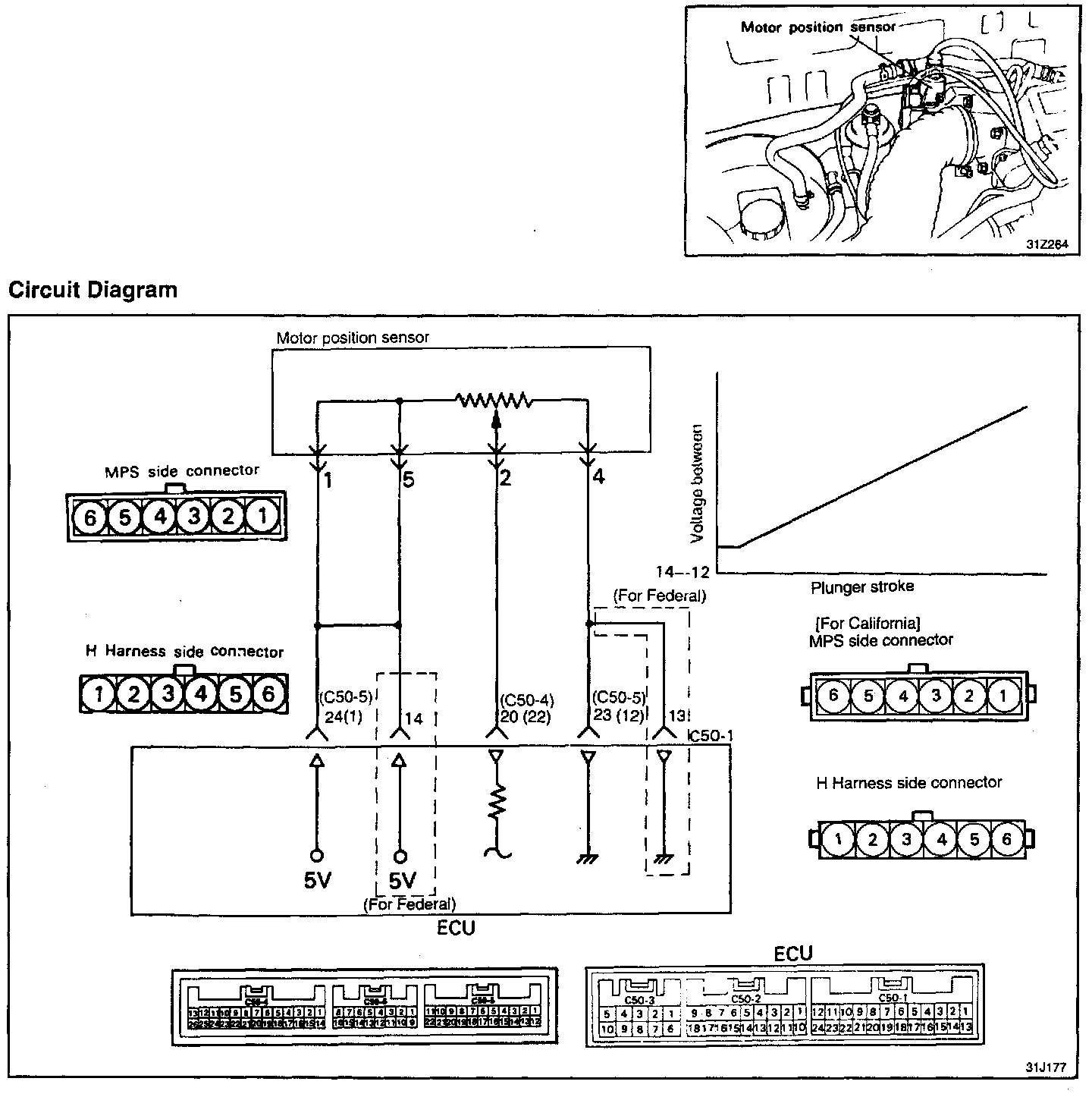 To test the Motor Position Sensor, attached to the Idle Speed Control (ISC) servo (mounted on the throttle body), proceed as follows.