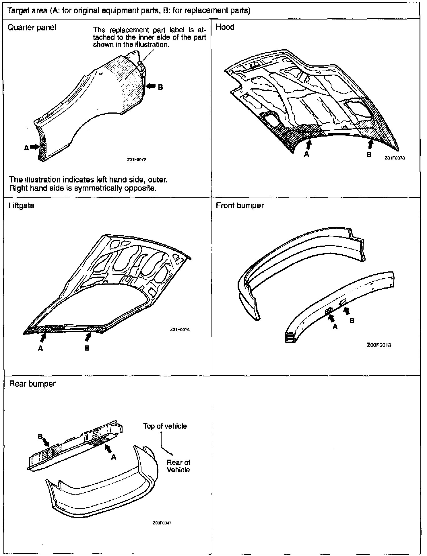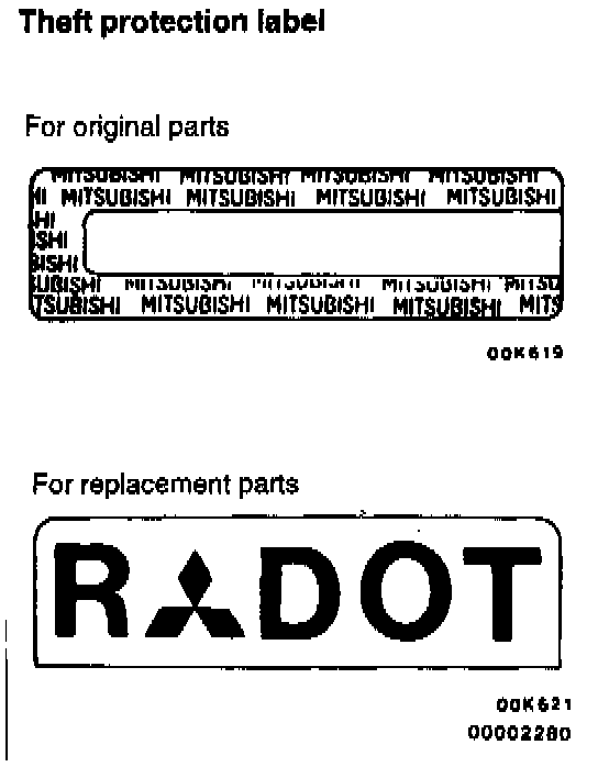 In addition, a theft-protection label is attached to replacement parts for the body outer panel main components, and the same data are stamped into replacement parts for the engine and the transaxle.