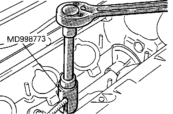2. Using appropriate removal tool (MD998773), loosen detonation sensor and remove.