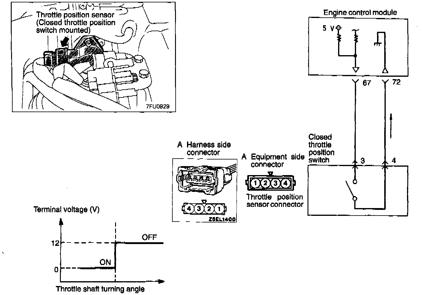 (4) Replace the throttle-position sensor (closed throttle position switch incorporated) if there is a malfunction.