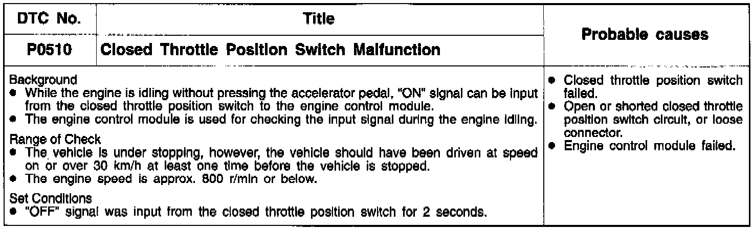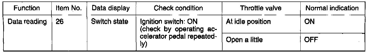 Hint: If the closed throttle position switch harness and individual part check results are normal but the closed throttle position switch output is abnormal, the following troubles are suspected.