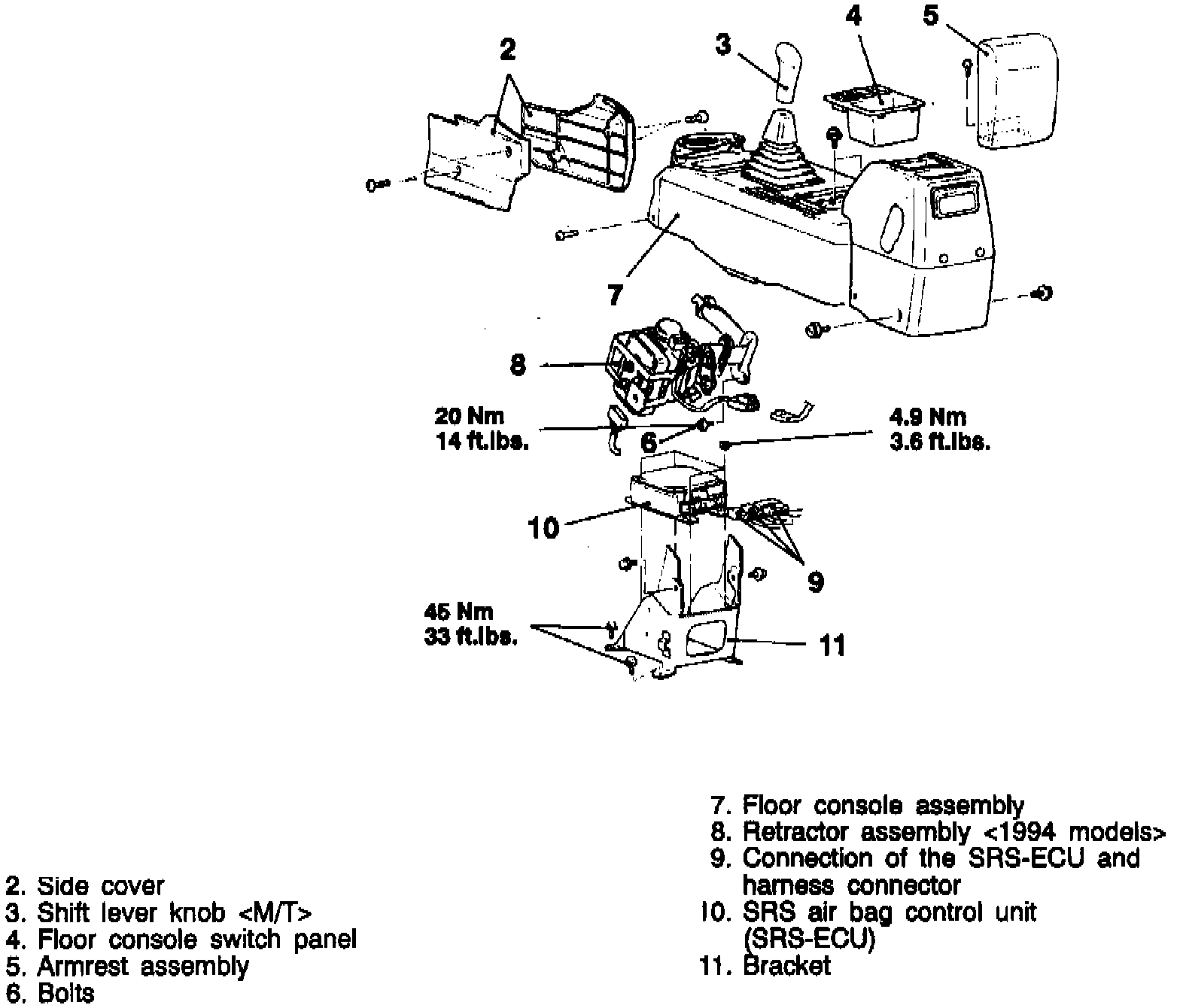 1. Remove side covers, manual transaxle shift lever knob, floor console switch panel and armrest assembly.Fig. 33 SDU Replacement: