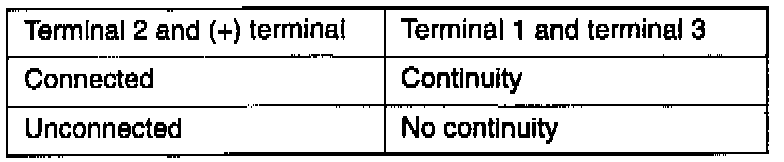 1. Connect the negative (-) terminal of the 1.5 Volts power supply to terminal 3 of the power transistor; then check whether there is continuity between terminal I and terminal 3 when terminal 2 and the positive (+) terminal are connected and disconnected.