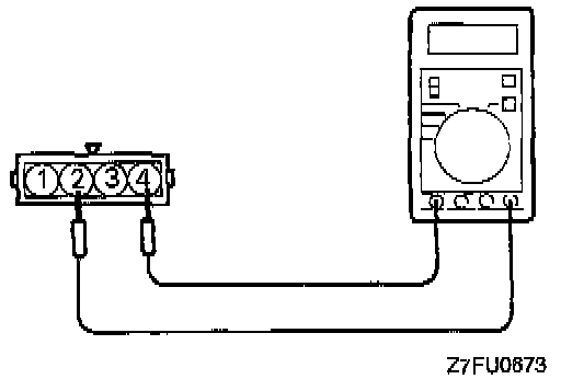3. Measure the resistance between the throttle position sensor side connector terminal No. 2 and terminal No. 4.