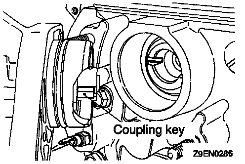 3. Install the distributor with the coupling key fitted in the keyway provided in the camshaft end.