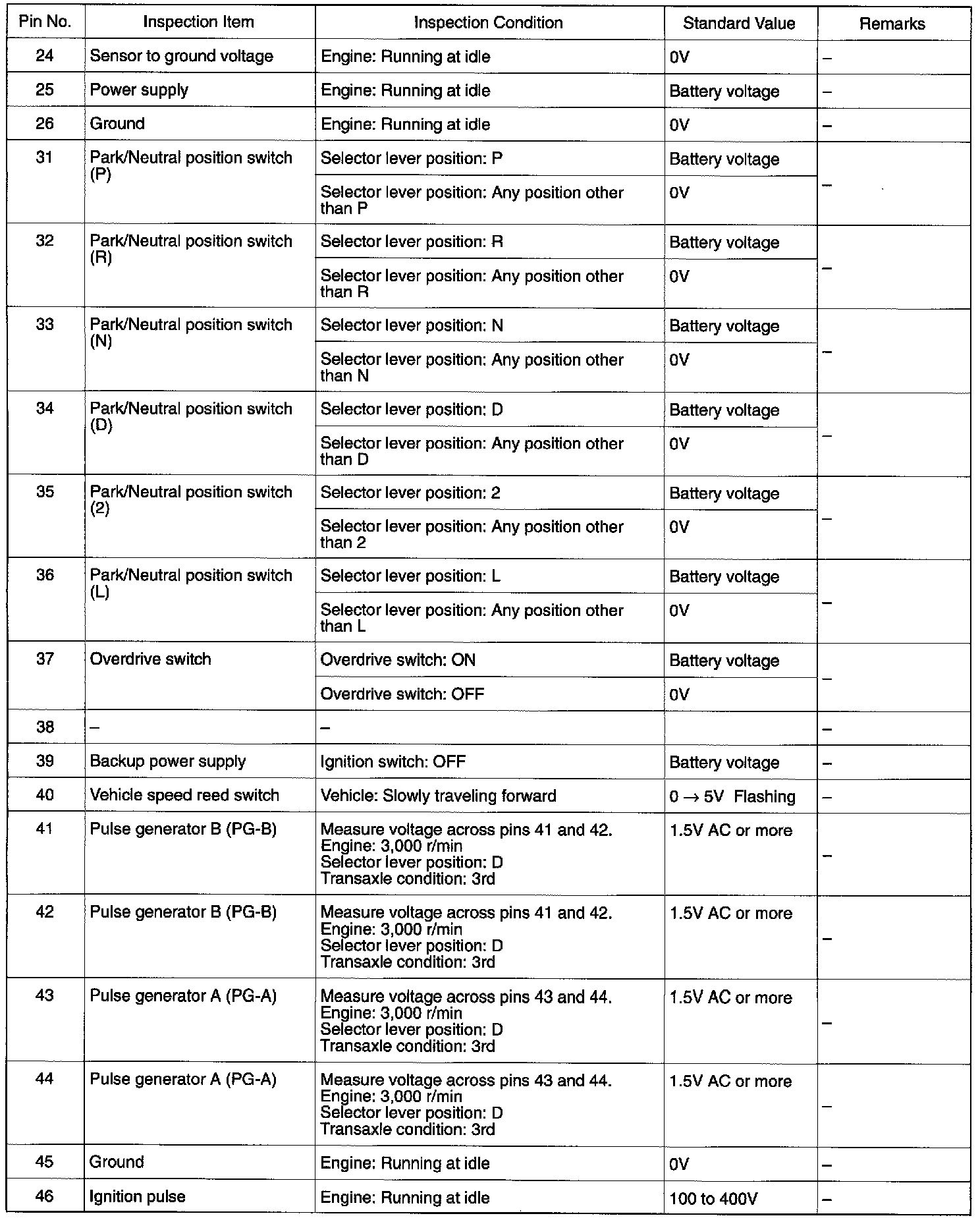 TRANSAXLE CONTROL MODULE PIN VOLTAGE