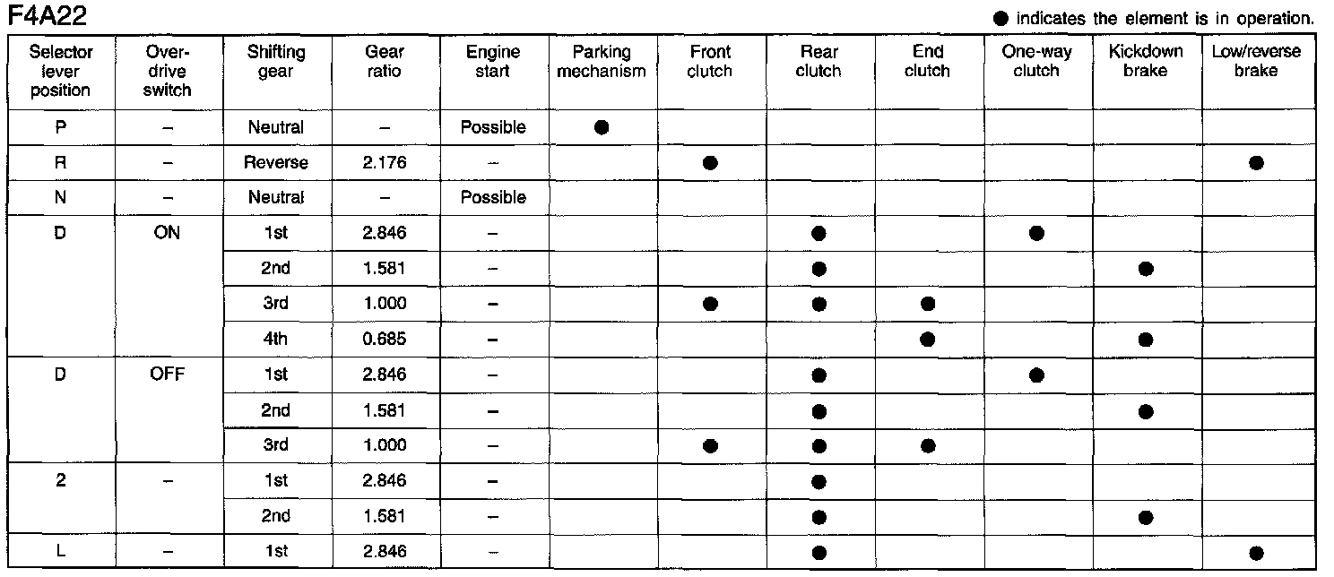 ELEMENT IN USE AT EACH POSITION OF SELECTOR LEVER