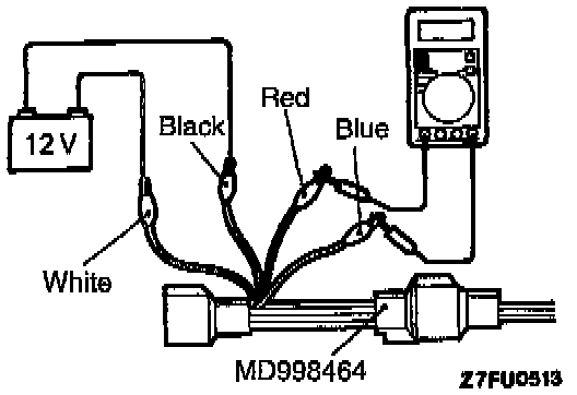 6. Connect a digital voltmeter to terminal (2) (red clip of the special tool) and terminal (4) (blue clip).