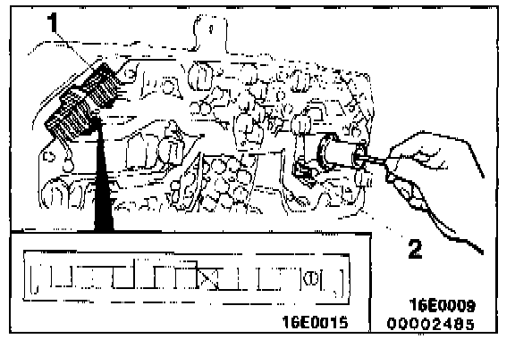 Use an ohmmeter to check that continuity and discontinuity alternates between terminals (1) and (2) four times at every rotation of the shaft of the speedometer cable connection.