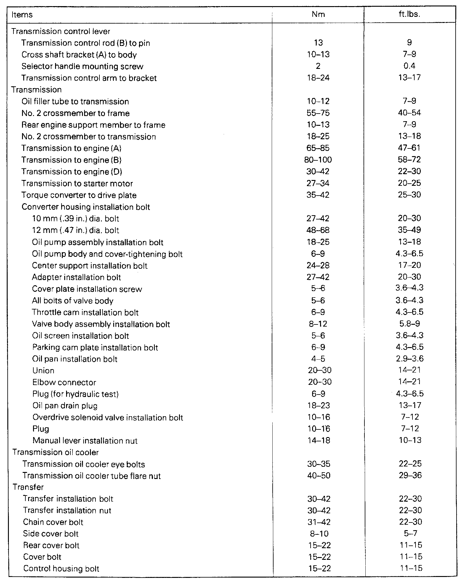 V4AW2 4-spd A/T, Transmission & Transfer Torque:
