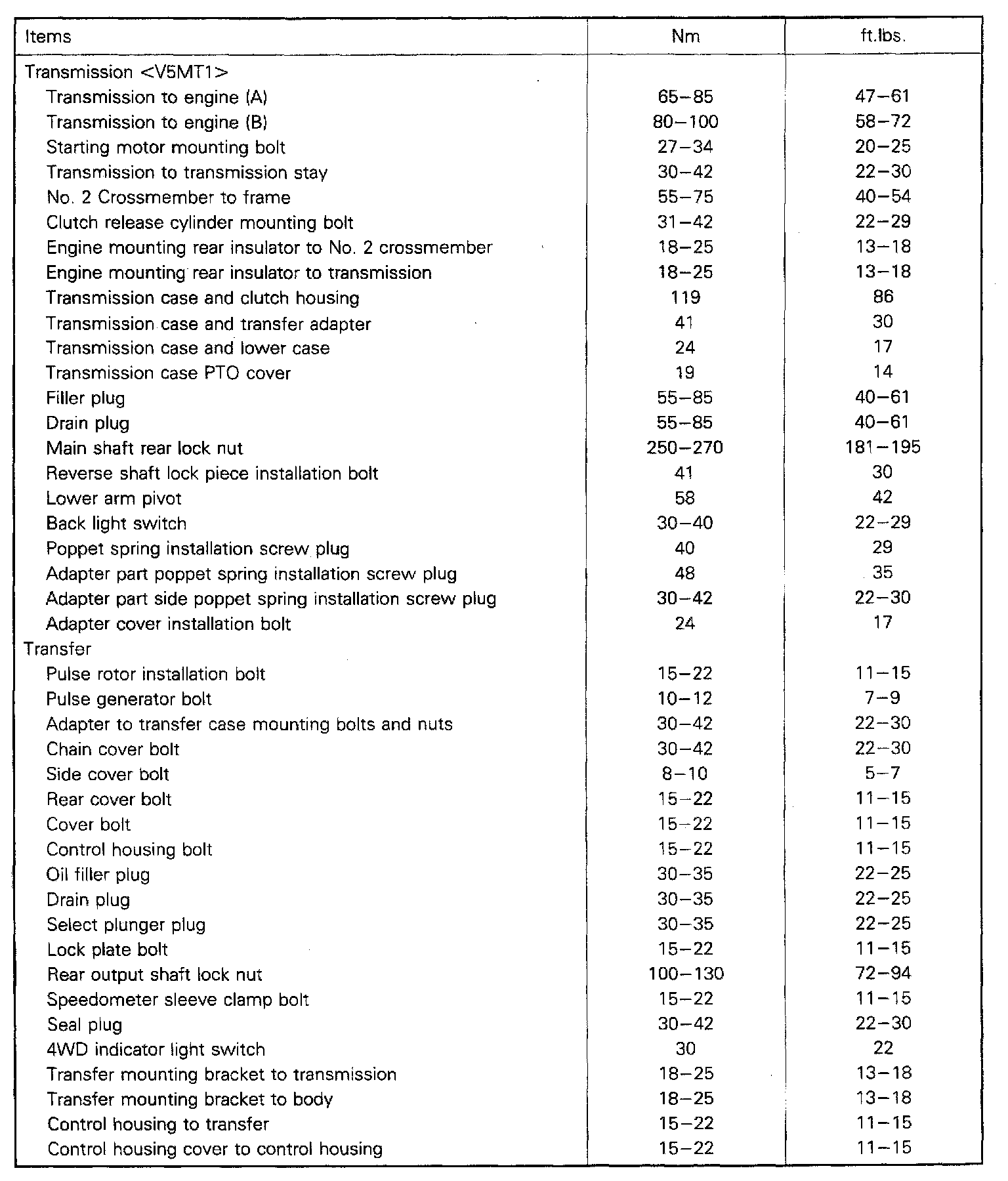 V5MT1 5-spd M/T, Transmission Torque: