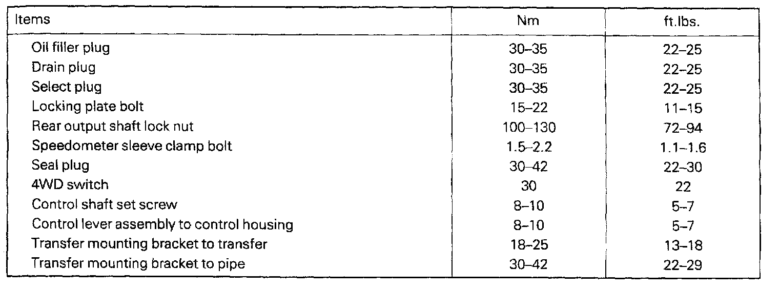 Transfer Case Torque Data