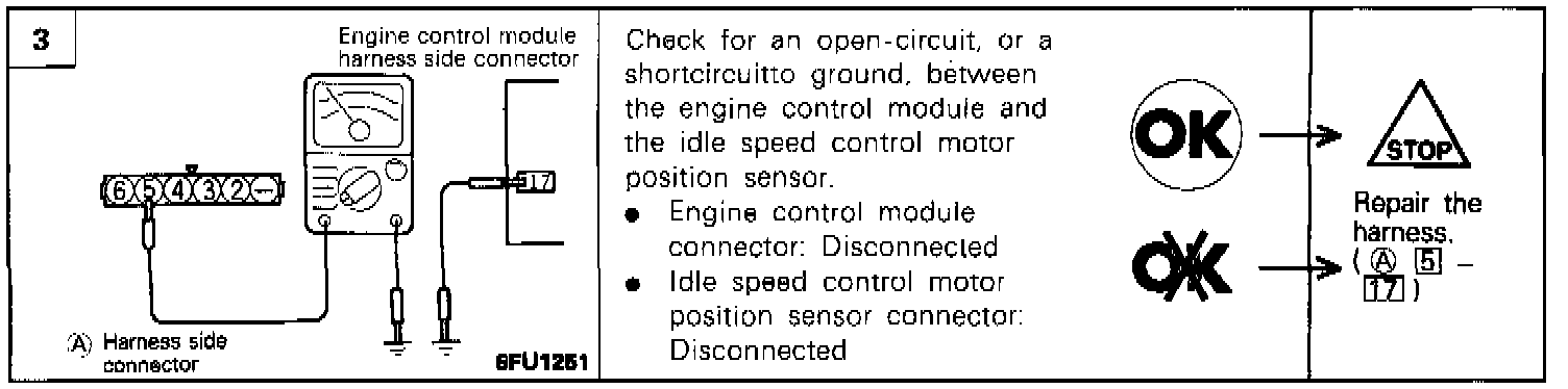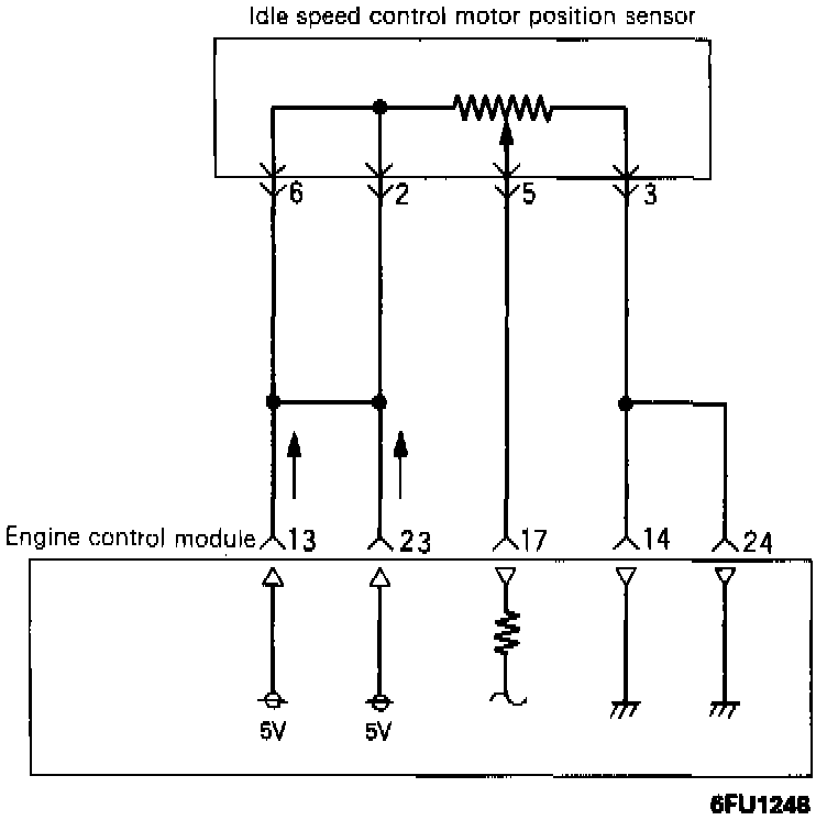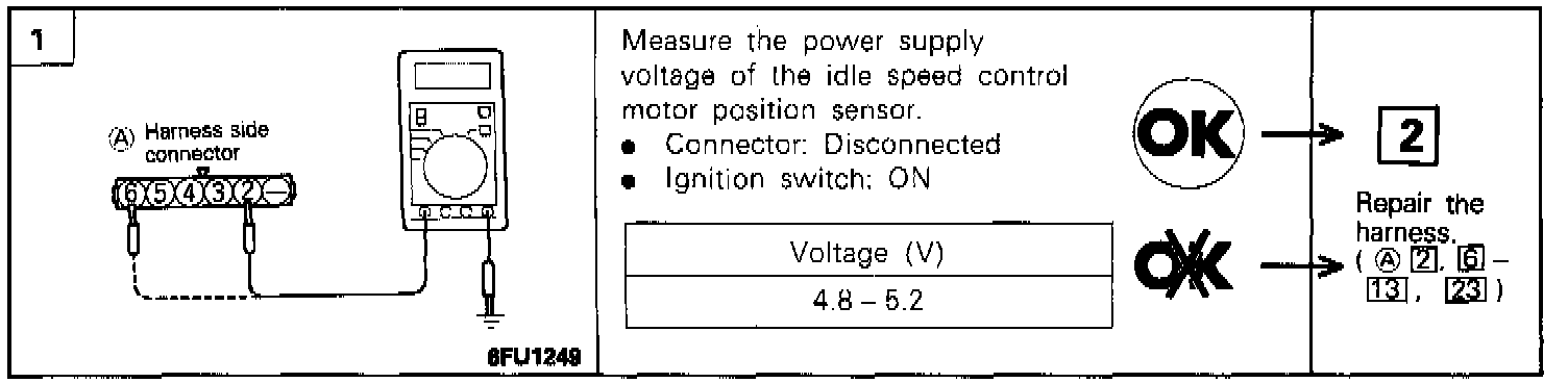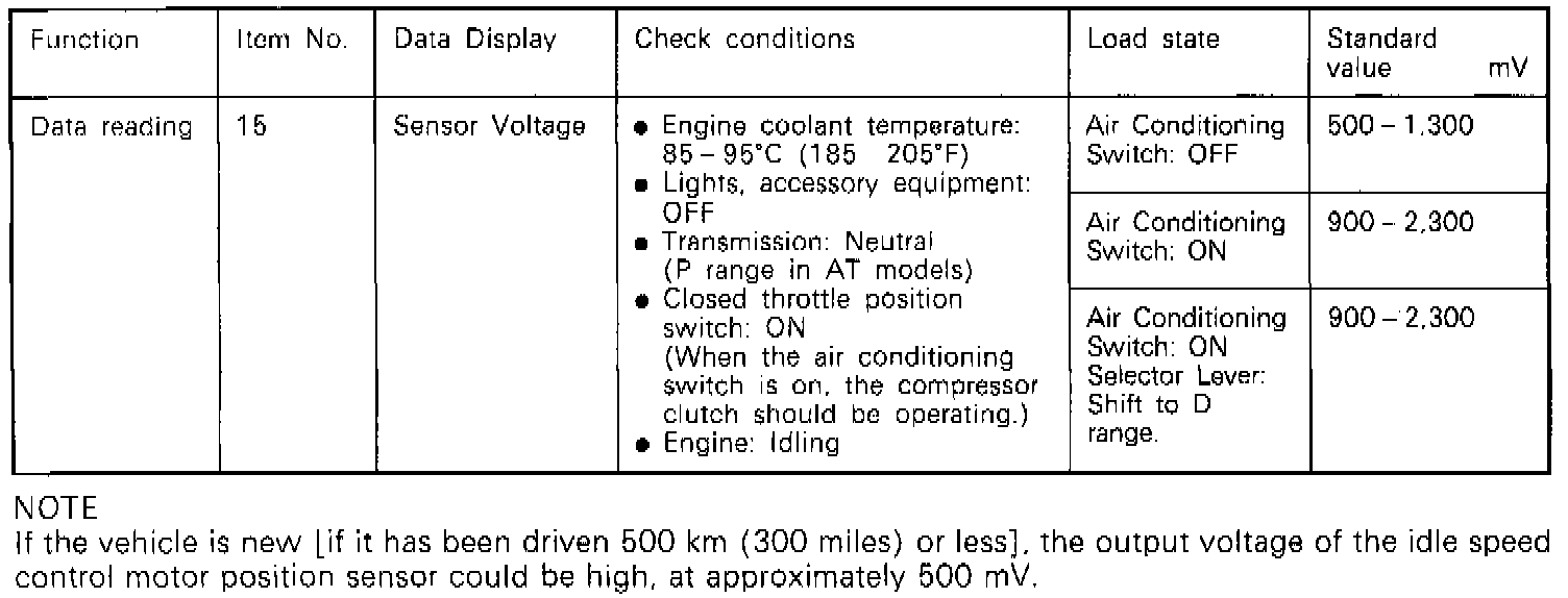 - If the output voltage of the idle speed control motor position sensor deviates from the standard value even though the results of checks of the idle speed control motor position sensor wire harness and individual components are normal, the following problems may have occurred.
