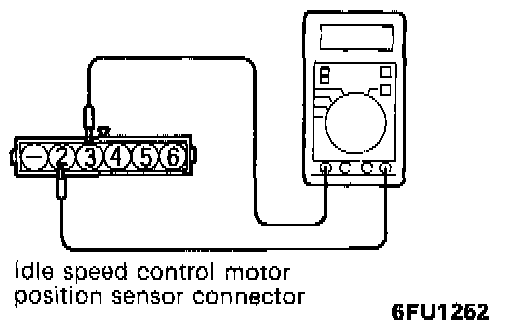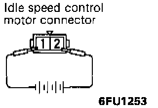 4. Connect 6 Volts DC between terminals 1 and 2 of the idle speed control motor connector, and then measure the resistance between terminals 3 and 5 of the idle speed control motor position sensor connector when the idle speed control motor is activated (caused to expand and contract)
