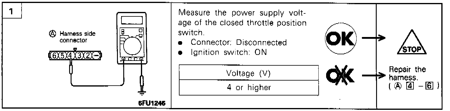 - If there is an abnormal condition of the closed throttle position switch output even though the results of the checking of the closed throttle position switch harness and of the component itself indicate a normal condition, the cause may be presumed to be one of the following.