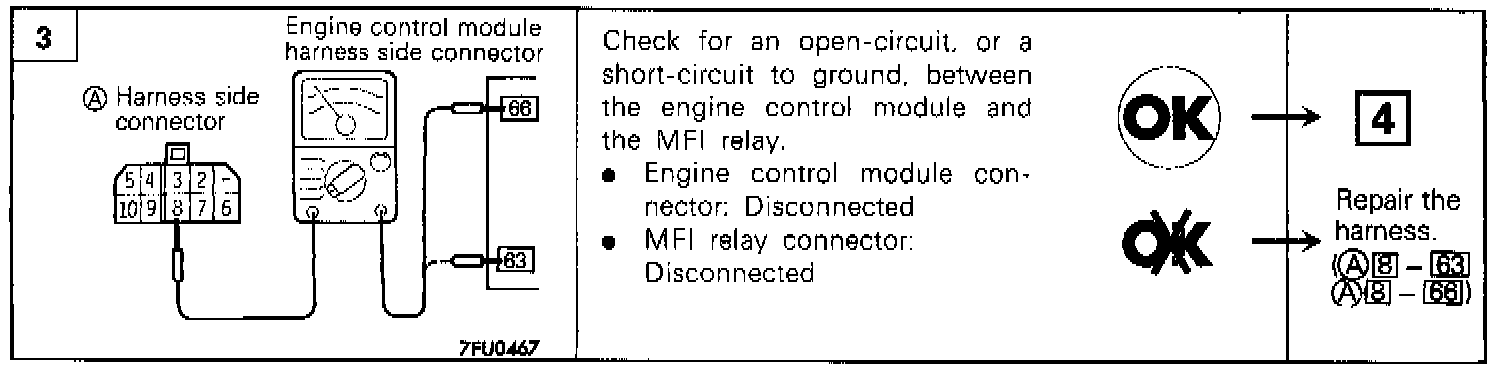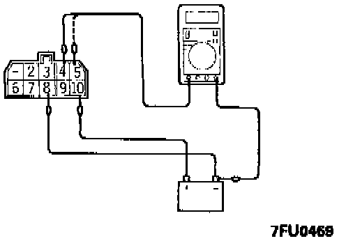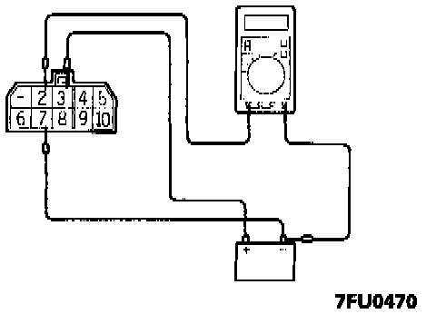 6. Using jumper wires. connect terminal 3 of the multiport fuel injection relay to the + terminal of the battery and connect terminal 7 of the relay to the - terminal of the battery.