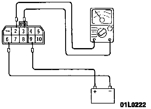 4. Using jumper wires, connect terminal 9 of the multiport fuel injection relay to the + terminal of the battery and connect terminal 6 of the relay to the - terminal of the battery.