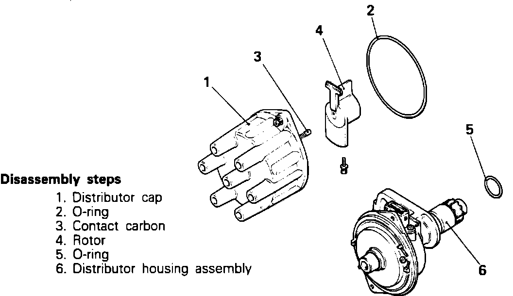 7. Inspect the distributor cap for continuity between the input and output side of each terminal.