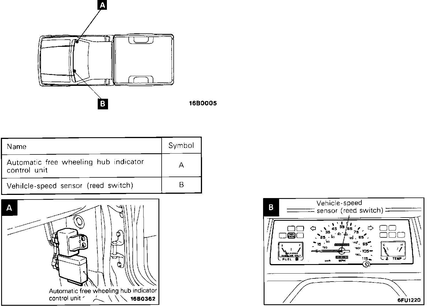 Automatic Free-Wheeling Hub Indicator: Component Location: