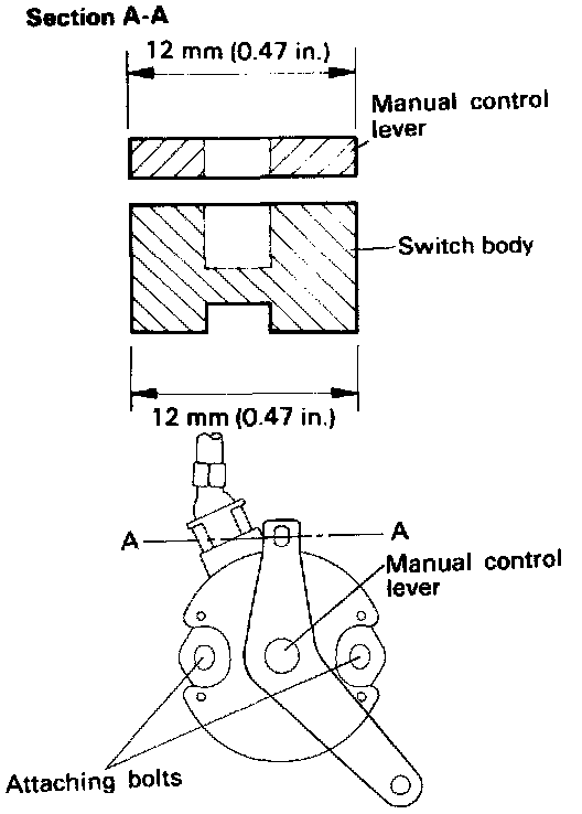 4. Turn the transaxle range switch body until the 12 mm (.47 in.) wide end of the manual control lever aligns with the switch body flange [12 mm (0.472 in.) wide portion].