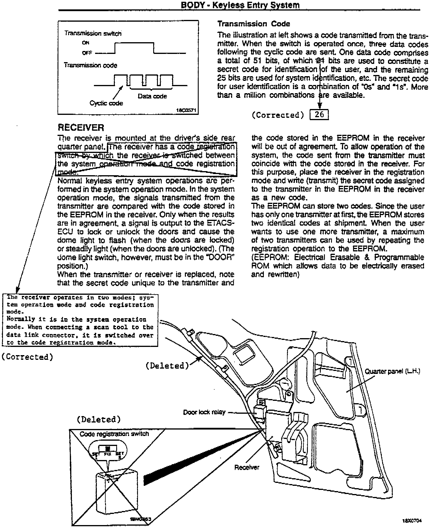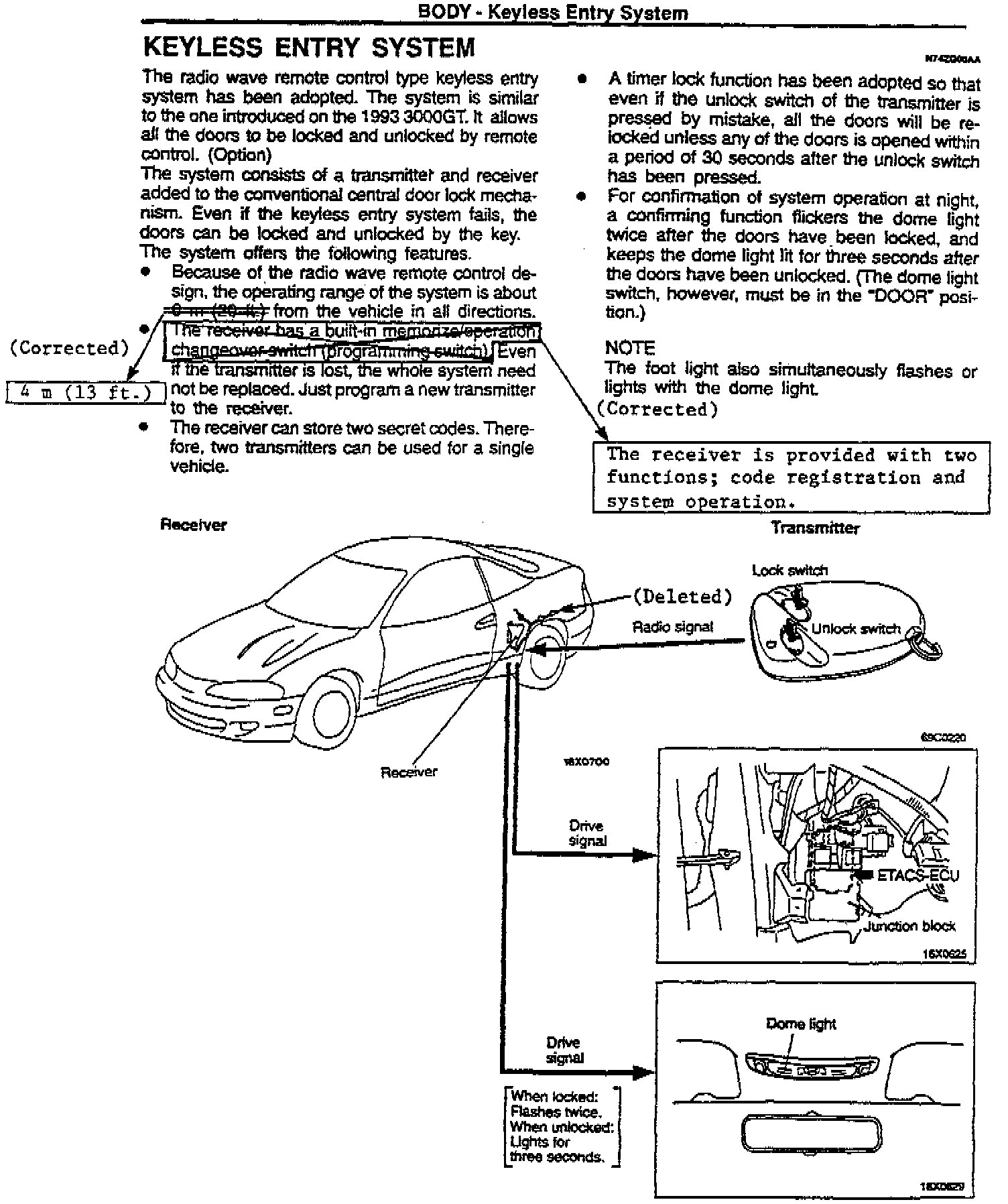 This bulletin is issued to correct errors in the description of the Remote Keyless Entry System in the 1995 Eclipse Service Manual. It applies only to the factory-installed TRW system.