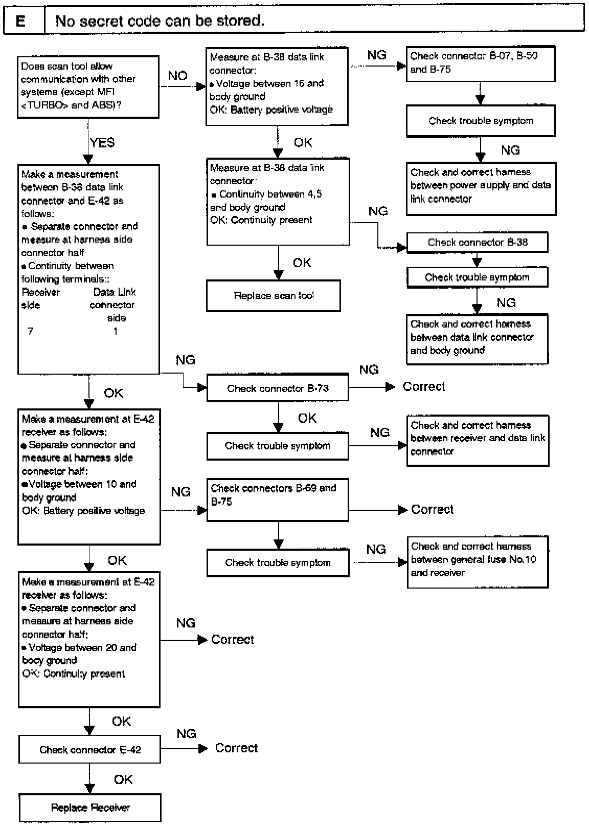 Add the corrected information for checking the E-42 receiver connector as shown.