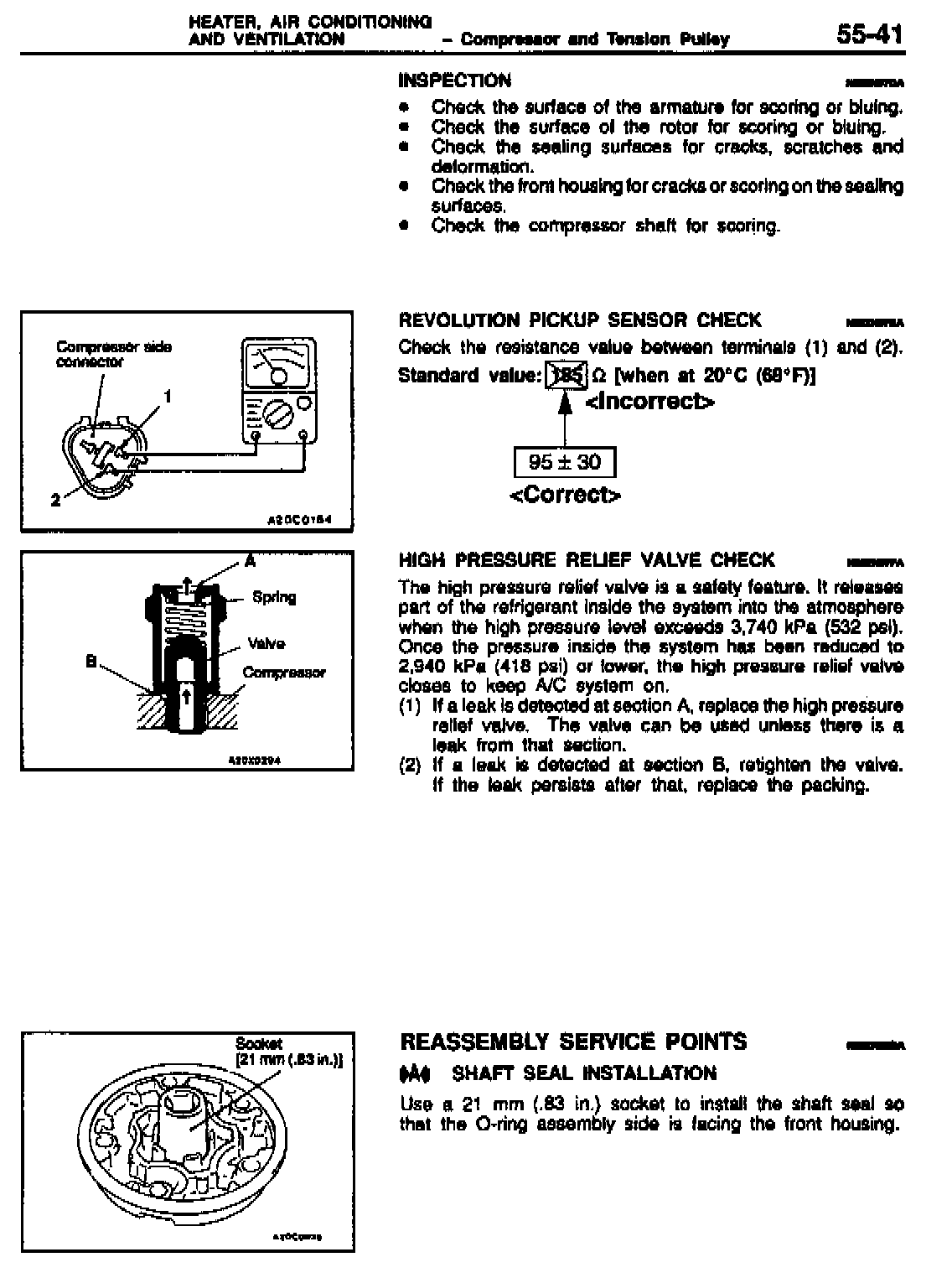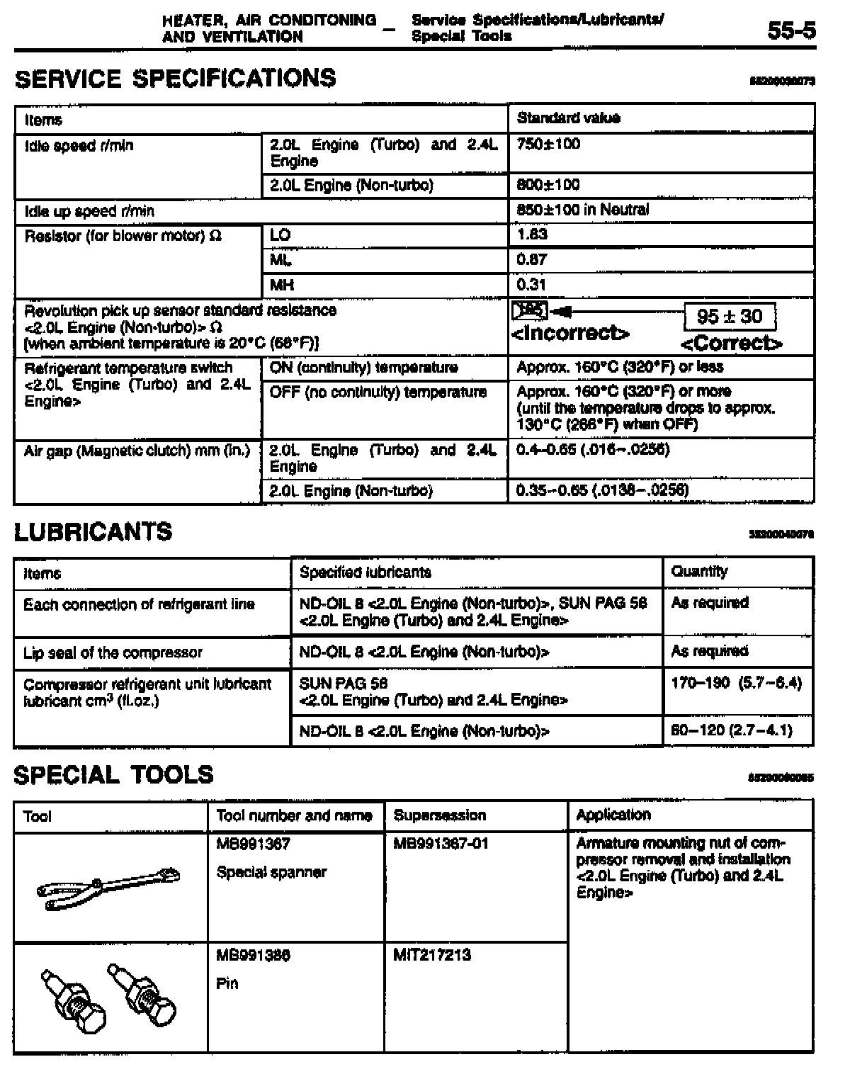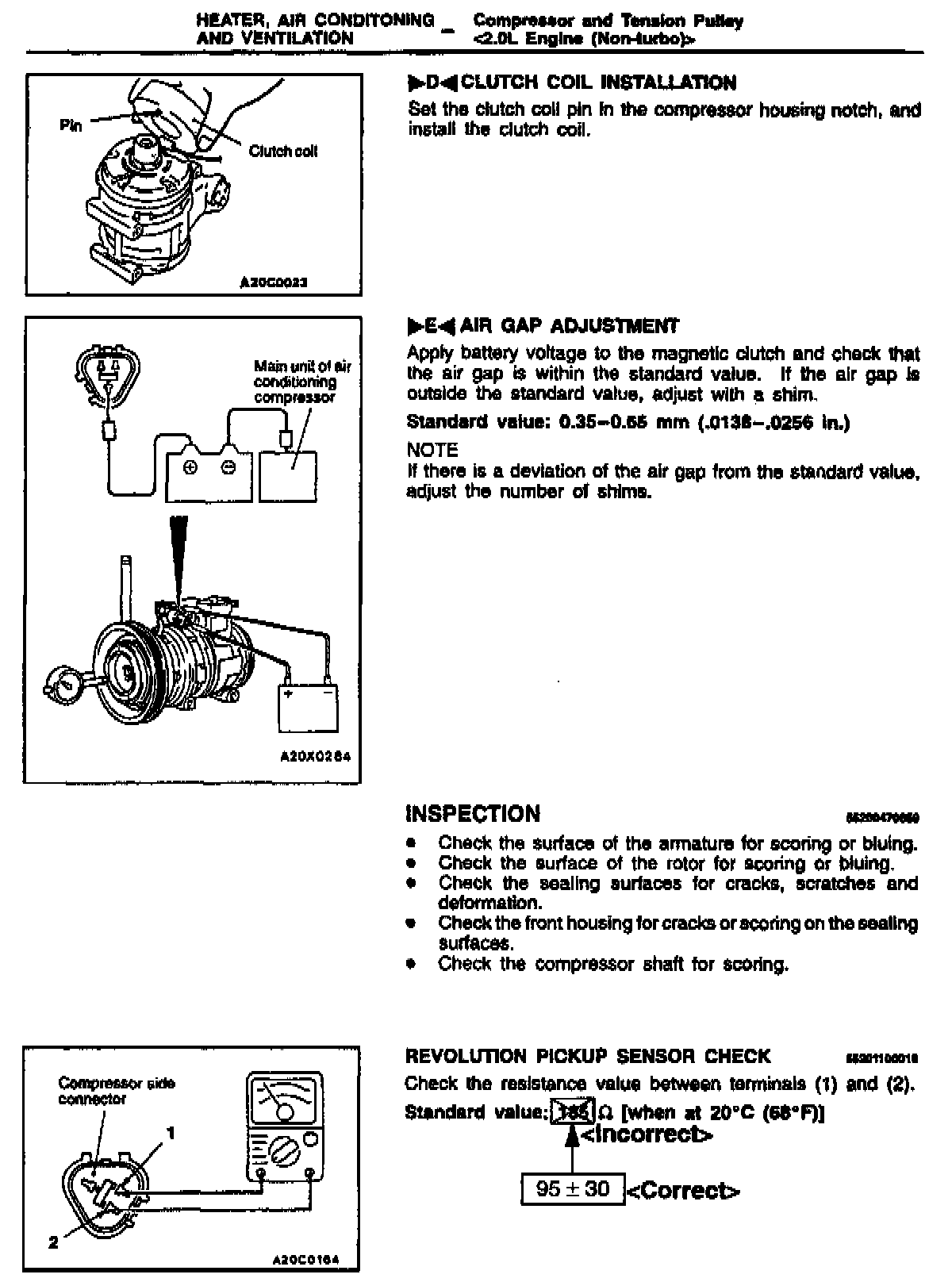 The resistance value for the revolution pick-up sensor is incorrect in the affected service manual pages. The correct resistance is 95 ± 30 ohms. This bulletin contains corrected service manual pages for this resistance.