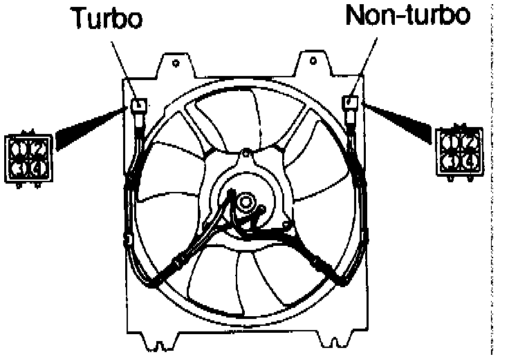 2. Apply battery voltage to motor connector terminal 3 while grounding terminal 2. Condenser fan motor should again operate smoothly, but at a higher speed.