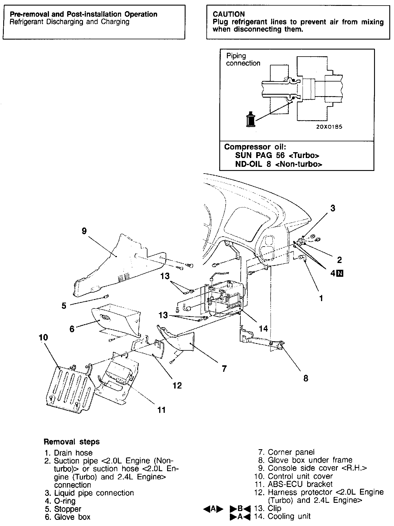 When replacing the cooling unit with new one, refill the evaporator with a specified amount of compressor oil.